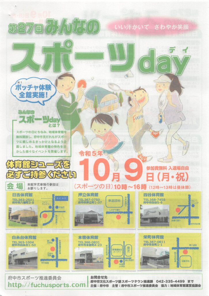 10月皆んなのスポーツday各体育館10/9