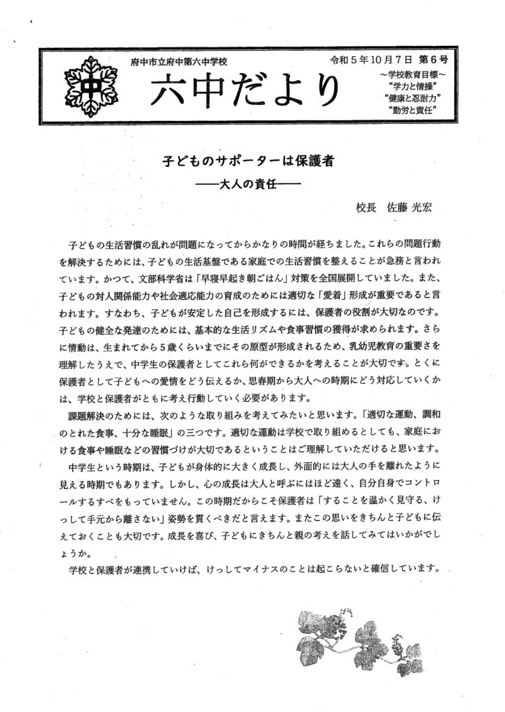 11月六中だより